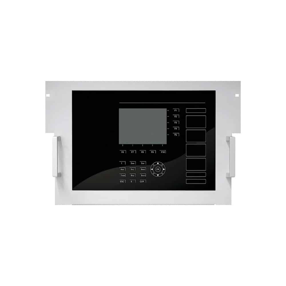 Bedienteilfront inklusive klappfähigem Montagerahmen zur Anzeige und Bedienung der Brandmelderzentrale oder eines Brandmeldesystems. Kapazitive Tasten und hintergrundbeleuchtete Zustandsanzeigen zur intuitiven Bedienung bei Statuswechsel. Bedienfreigabe durch Zugangscodes für alle Ebenen, mit menügeführter Anzeige in unterschiedlichen Bedienebenen.