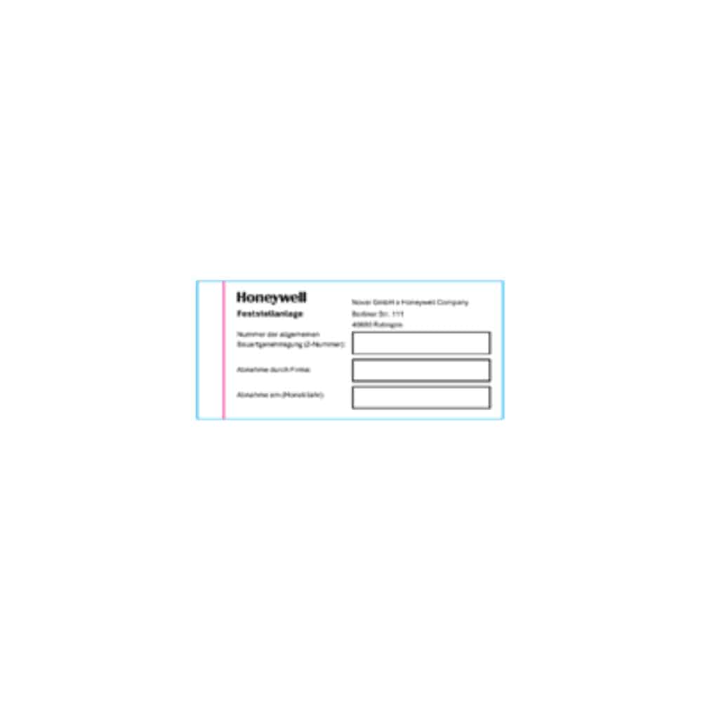 Aufkleber zur Anbringung auf einem Schild an einer Feststellanlage gemäß DIBt-Vorschrift.