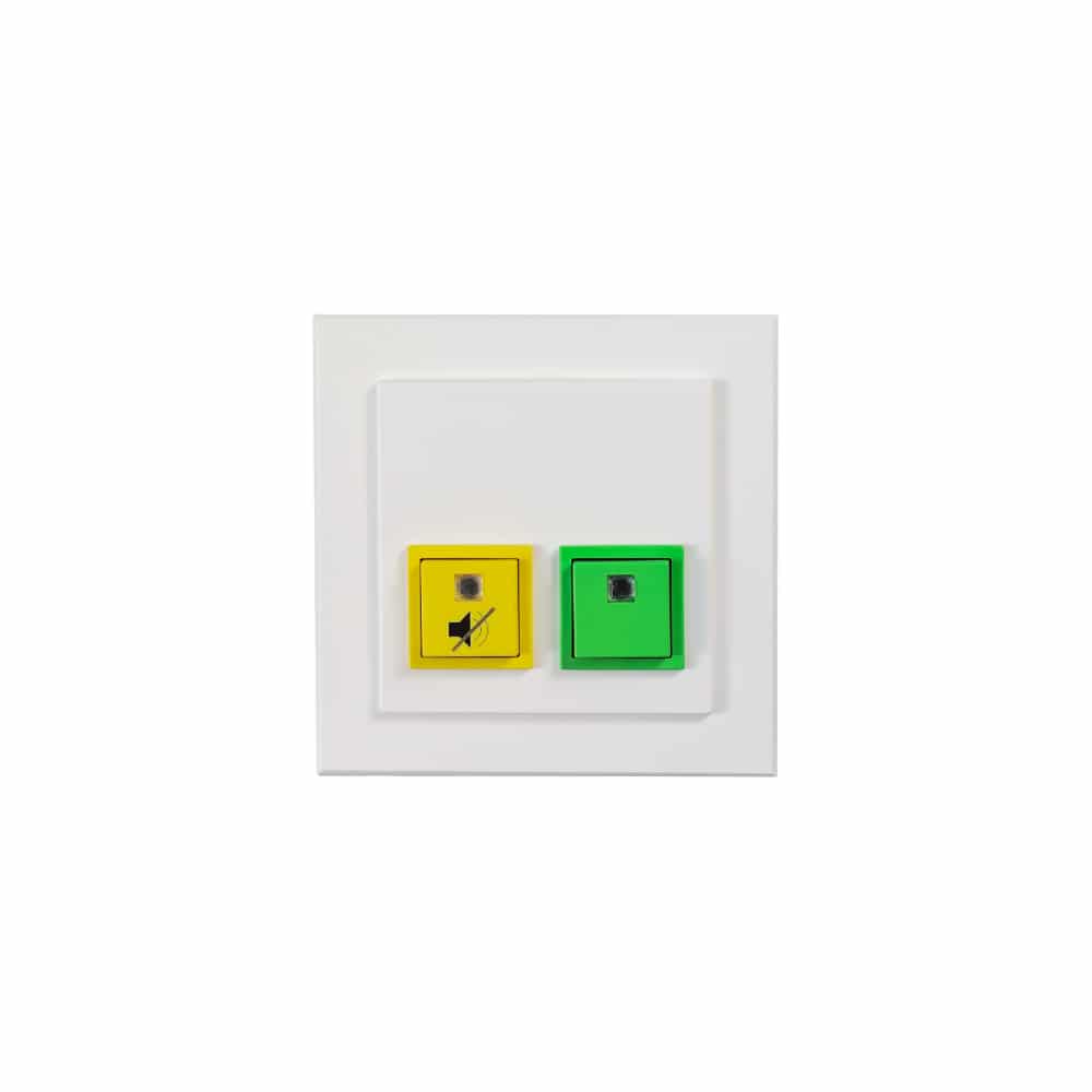 Dienstzimmereinheit mit Anwesenheits- und Abstelltaste mit Summer und Anwesenheitslicht rot für Behinderten-WC-Rufanlage inkl. Rahmen und Abdeckplatte.