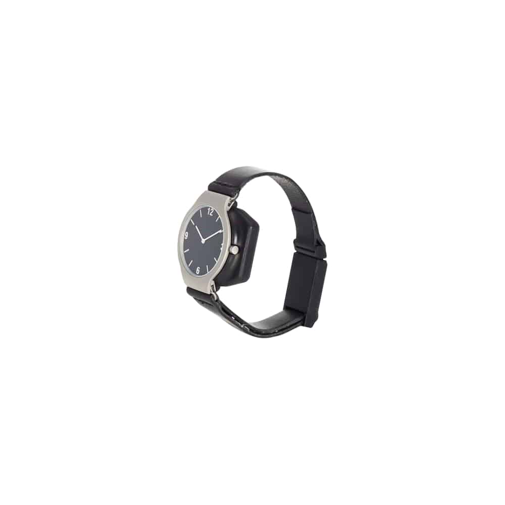 Patienten-Transponder mit dreidimensional wirkender Antenne und Batterieüberwachung. Das Armband ist nur mit einem Magnetschlüssel zu öffnen.